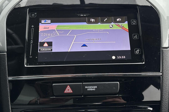 Zoals u mag verwachten van deze Suzuki Vitara is hij uitgerust met een reeks aan actieve veiligheidssystemen. Hill hold control voorkomt dat de auto achteruit rolt op een helling. Het systeem werkt als een automatische handrem die in- en uitschakelt als u dat wenst. Bij een gevaarlijke situatie is remmen essentieel. De Brake Assist haalt het maximum uit de remcapaciteiten van deze Suzuki Vitara.