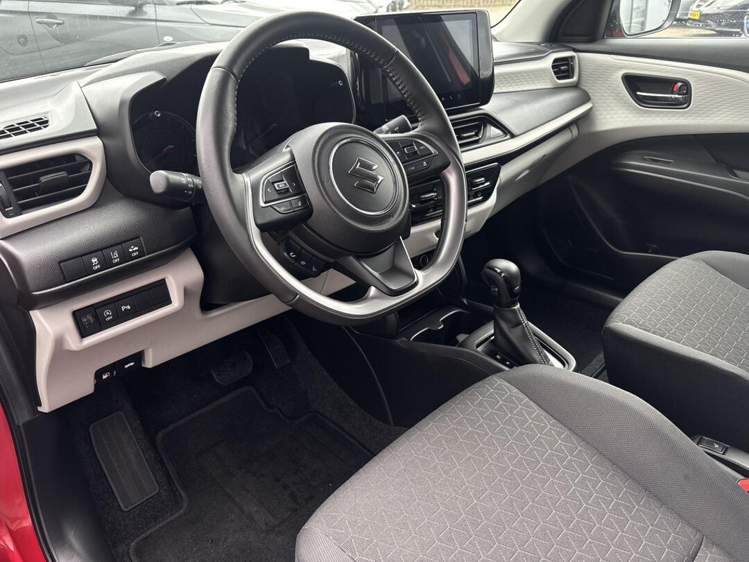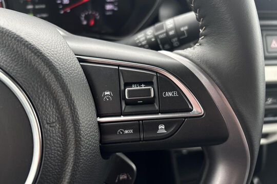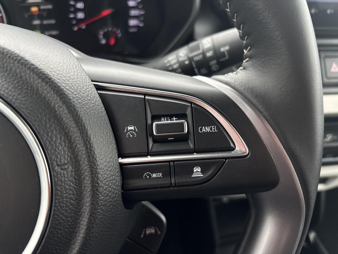 De achteruitrijcamera geeft u duidelijk zicht op de ruimte achter de auto. Met adaptive cruise control houdt deze auto automatisch afstand tot uw voorligger. De ingebouwde Connected Services vertellen u via de app alles over de status van de auto. Locatie, onderhoudsstatus, brandstofpeil en nog veel meer! Onderweg kunt u veilig genieten van het audiosysteem met DAB-radio en het full map navigatiesysteem. Want in deze Suzuki bedient u ze vanaf het stuurwiel. De sloten worden automatisch ontgrendeld dankzij de keyless entry. Fijne optie! De uitrusting van deze Suzuki is met sportstuur met schakelpaddels, airconditioning, bagage afdekhoes en boordcomputer behoorlijk compleet.