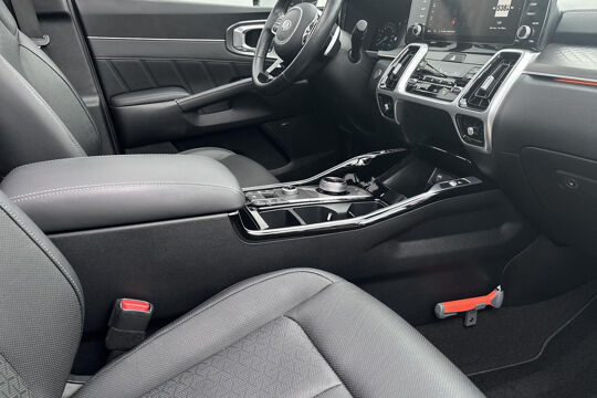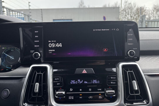 Alle technologie in de Kia Sorento is er op gericht om uw rit veilig en gemakkelijk te laten verlopen. Een solide hybride: zowel een elektromotor als een verbrandingsmotor voor maximaal rijplezier en minimale milieubelasting. En o ja, het lederen interieur is ook een vermelding waard! U zult absoluut de luxe waarderen van de stoelverwarming, verwarmbare achterbank, en het verwarmbare stuur dat inbegrepen is in dit voertuig. Een heerlijk zonnetje, of indrukwekkende wolkenpartijen? Bekijk ze onbelemmerd door het elektrisch bediende glazen panoramadak. De achterklep opent automatisch met een druk op de knop. Handig als u met volle handen staat. Natuurlijk behoren 19 inch lichtmetalen velgen, LED koplampen, warmtewerend glas, trailer assistent, in delen neerklapbare achterbank en LED-achterlichten ook tot de uitrusting van deze complete auto.